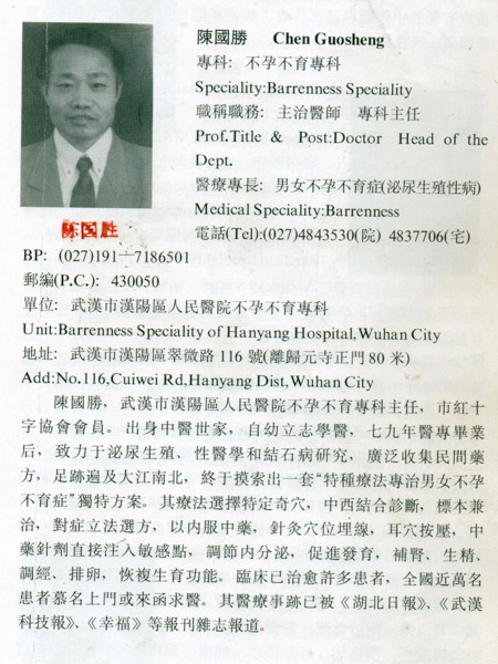 中国知名专科医院98卷对陈主任入录专科名医简介