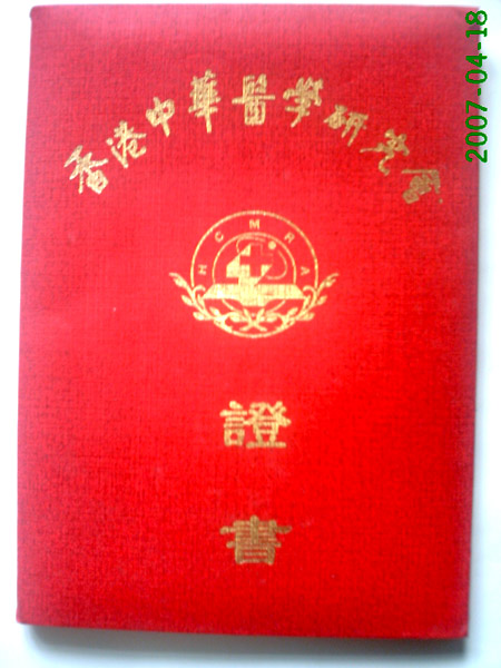 这是香港中华医学研究会给陈主任颁发的证书